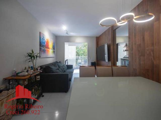Sala para 2 ambientes com móveis planejados e varanda também com móveis planejados, incluindo uma bancada mármore. Cozinha e lavanderia com móveis planejados. Com 1 vaga de garagem.